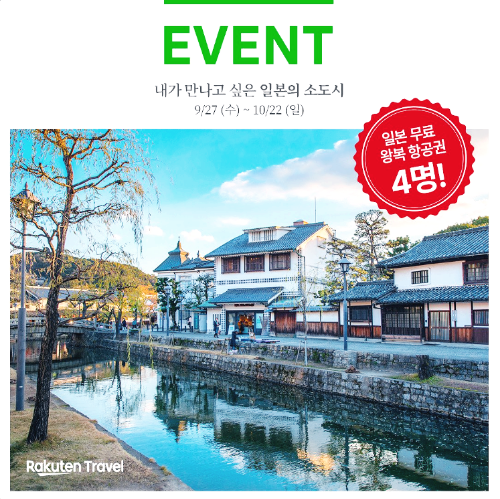 이번 포스팅에서는 마지막 세번째 이벤트인 라쿠텐 트래블에서 진행하는 내가 만나고 싶은 일본의 소도시 이벤트를 알려드리려고 합니다. 해당 이벤트 역시 인스타그램으로 간단하게 참여할 수 있으니 마지막 기회도 놓치지 마시길 바랍니다:)