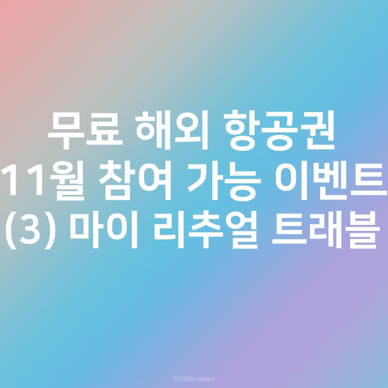 지난 10월에 전해드렸던 무료 항공권 이벤트 정보에 많은 분들이 관심을 가져주셨는데요. 이번 11월에도 다...