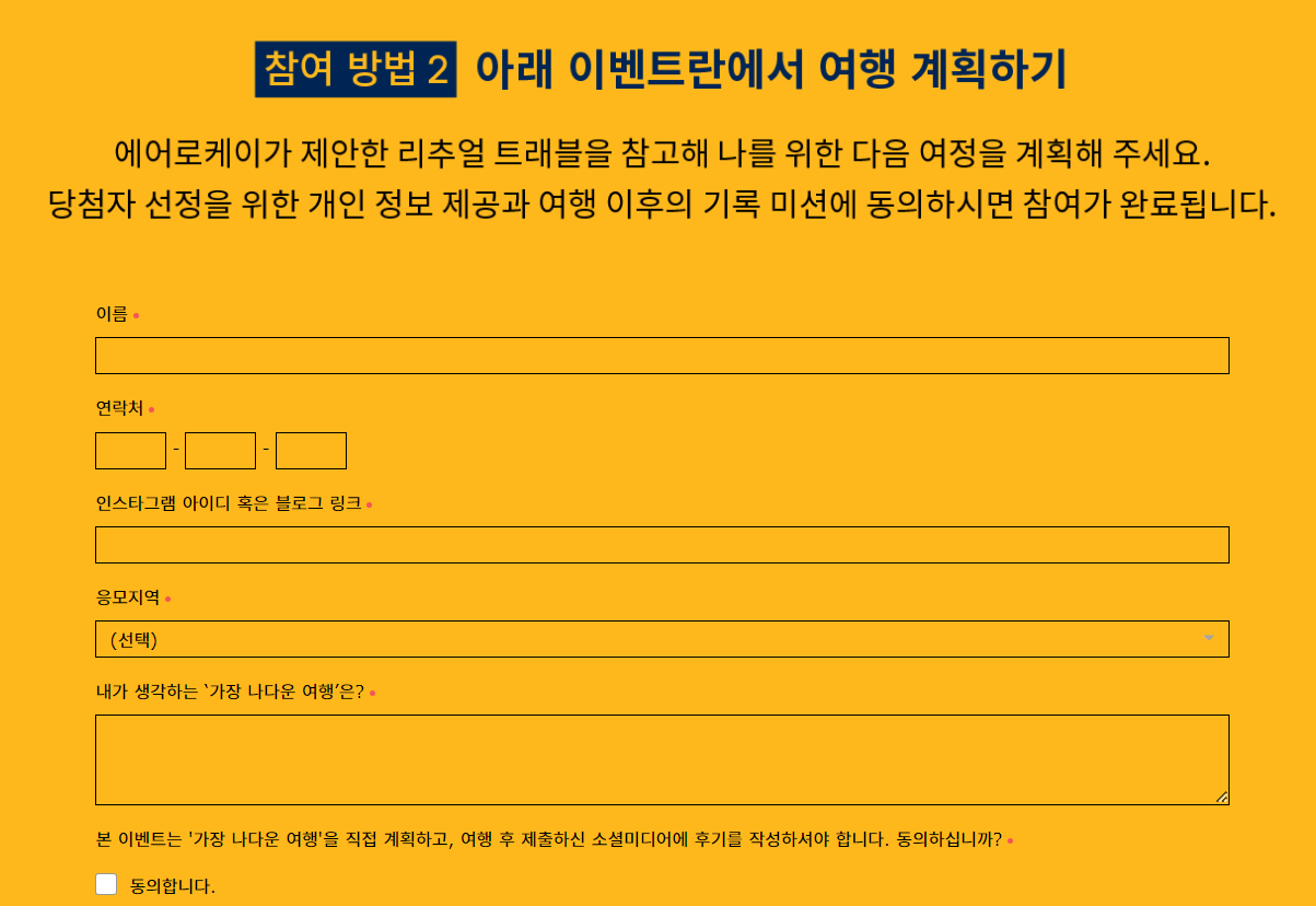 -여행 후기 작성과 개인정보 수집 및 이용에 동의해야 응모가 가능합니다.