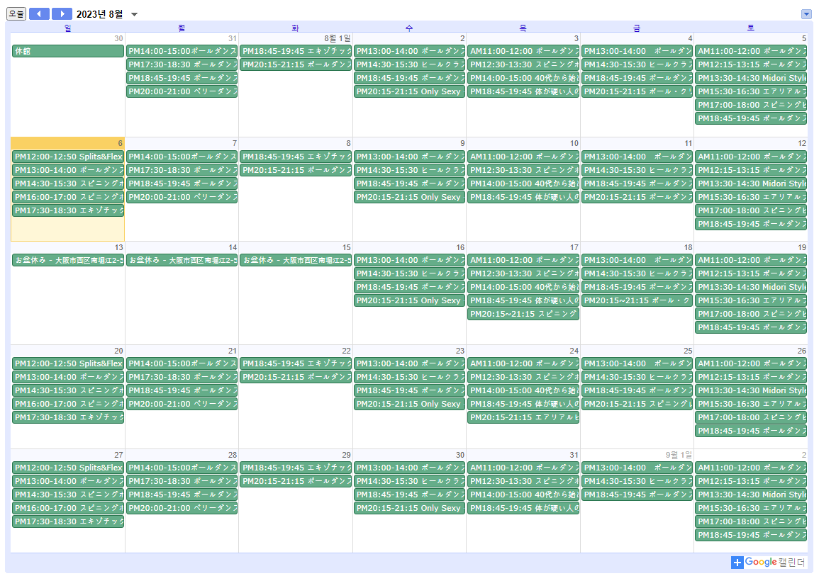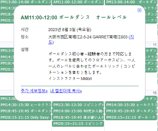 지금까지 오사카 폴댄스 스튜디오 앙벨리르의 소개부터 예약방법을 소개해드렸는데요.