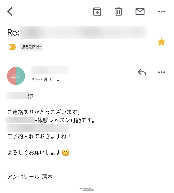 체험레슨이 가능한 수업인지 확인 후 예약 확정 회신을 받으면 해당 수업 시간에 방문하면 됩니다.