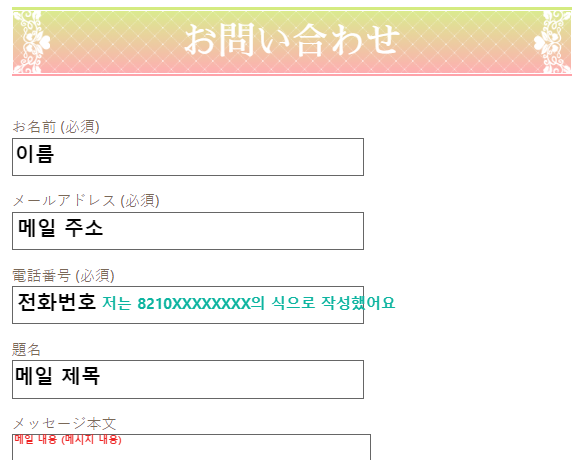 이름 및 메일주소, 전화번호, 메일 제목을 작성한 후 메일 내용에 체험레슨에 참여하고 싶다는 내용을 적어줍니다. 미리 스케줄을 확인했다면 어떤 수업에 참여하고 싶은지와 기타 문의 사항을 함께 적으면 한번에 회신을 받을 수 있기 때문에 시간 단축에 도움이 될 거 같아요.