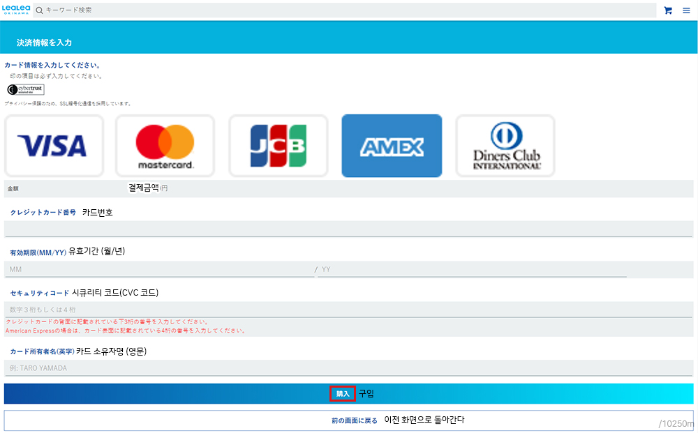 VISA / master / JCB / AMEX / Diners Club 등 5개 카드로 구입이 가능합니다.