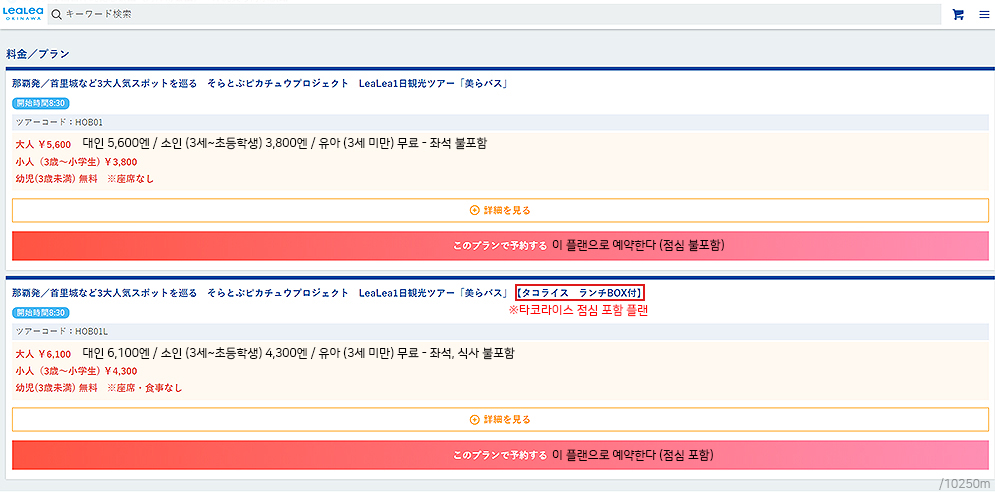 점심을 개인적으로 해결하고자 할 경우에는 위쪽 플랜을 선택하면 되고, 만약 점심도 투어회사 측에서 제공받고 싶다면 아래 플랜을 선택하면 됩니다.