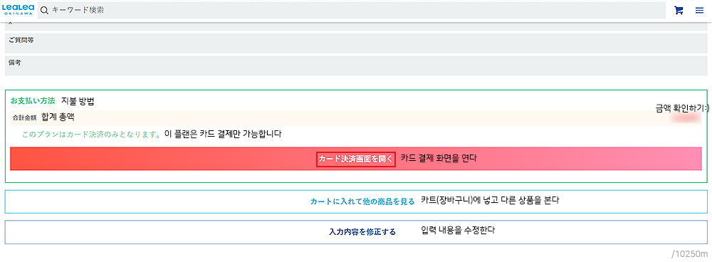붉은색의 [카드 결제 화면을 연다] 버튼을 눌러줍니다.