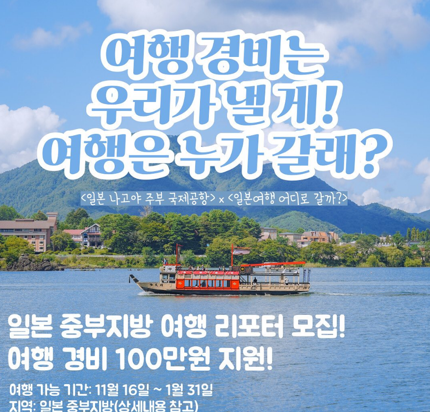 -리포터가 되면 여행 경비 100만원을 지원받게 되며, 지원 당시 작성했던 여행 계획을 따라 일본 중부지방을 여행하면 됩니다.