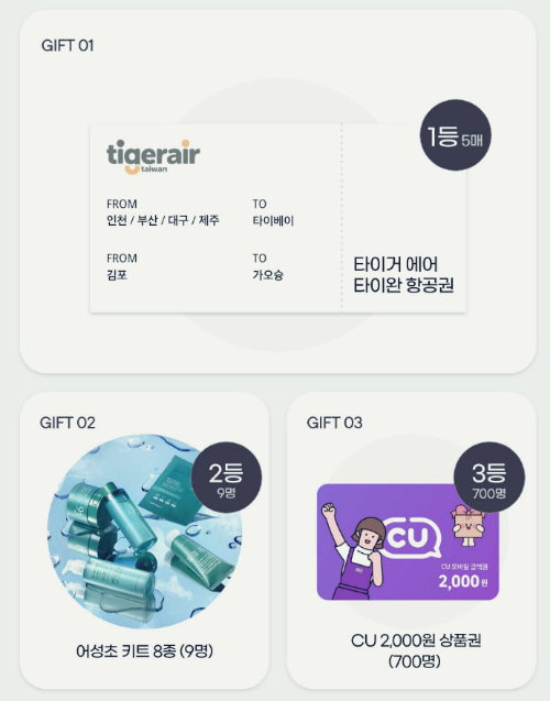 | 2등 | 9명 | 어성초 키트 8종 |